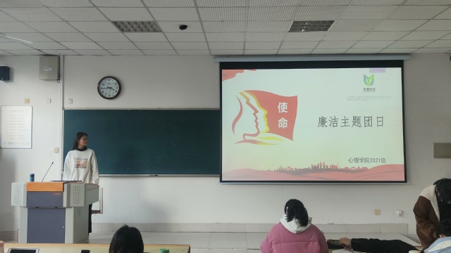 为加强学院新时代廉洁文化建设,增强团员的廉洁意识,提高团员的道德修养。近日,心理学院各团支部组织开展廉洁文化主题团日活动。 活动中,各支部通过开展廉洁警示、廉洁宣讲、诵读分享、知识竞赛等形式,引导广大团员从根源上充分认识到廉洁文化的本质特征与深刻内涵,加深团员对廉洁文化的理解,提高思想认识,从而切实提升团员廉洁自律意识和防腐拒变的能力。 此次活动的开展,充分发挥团支部在团员青年教育中的战斗堡垒作用,加强新时代廉洁文化建设,培育同学们廉洁自律的道德操守,营造风清气正的校园文化氛围,帮助同学们树立廉洁意识。