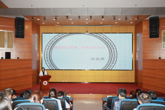 6月4日,学校举办党的纪律作风宣讲会,邀请山东师范大学法学院邹艳晖教授作专题宣讲,党委书记刘军,党委委员田玉胜、王世群会见邹艳晖教授并座谈。 刘军对邹艳晖教授来校表示欢迎,他简要介绍了学校基本情况以及学校党纪学习教育开展情况,希望通过本次宣讲鼓励广大党员干部深刻领会党中央修订《中国共产党纪律处分条例》的重大意义,不断用党规党纪校正思想和行动,以工作实效展现新作为。 报告会上,邹艳晖以《执纪执法贯通 形成纪法合力》为题,从《中国共产党纪律处分条例》(以下简称《条例》)修订亮点,《中华人民共和国监察法》和《中华人民共和国监察法实施条例》的性质、结构和内容以及《条例》推动党内法规同国家法律的衔接和协调三个方面展开讲解。宣讲内容丰富、脉络清晰,结合高校实际,引用生动案例,对帮助广大党员干部深刻理解、全面领会《条例》的精神实质和具体规定,扎实开展好党纪学习教育具有重要的指导作用。 与会人员纷纷表示,将以习近平总书记视察山东重要讲话指示精神为指引,将开展党纪学习教育与落实中央部署和省委要求、推动学校高质量发展目标结合起来,努力把党纪学习教育和《条例》学习成果转化为坚定信仰、锤炼党性、指导实践、推动发展的强大力量,为加快建设高水平医科大学提供坚强纪律保障。 全体处级干部,党总支(党委)书记,党支部书记,相关部门科级干部,全体辅导员参加宣讲会。